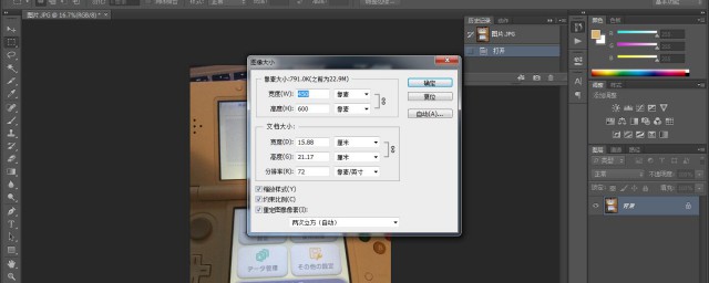 2、在弹出的对话框中分别按照像素和文档大小来改变图像尺寸。在弹出的对话框中降低品质的值,随着品质降低。在右侧能看到图片当前所占内存大小,最后点确定即可,这样就可以在不改变图片尺寸的情况下降低图片所占内存。