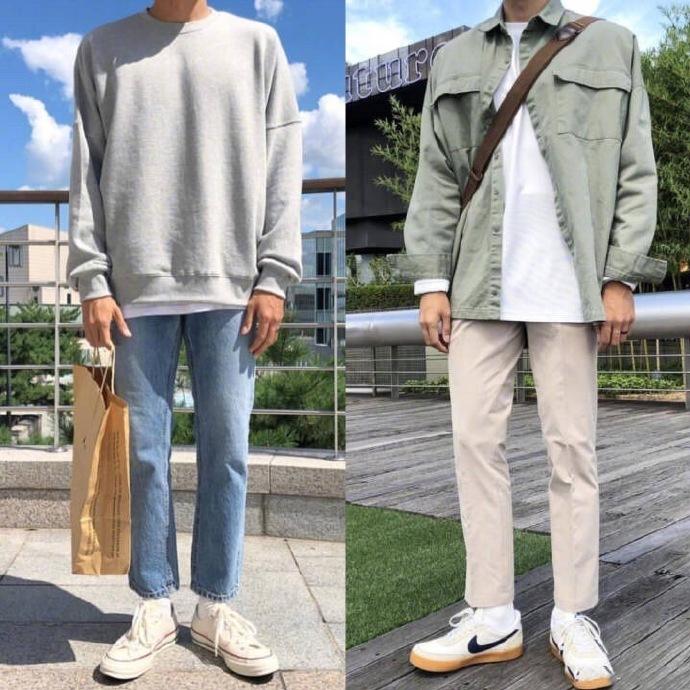 遵循“上宽下窄,同色叠穿”的法则。身材矮小的男生,利用上宽下窄穿搭,会让你的整体比例从腿部拉长,从而打造出大长腿既视感,而同色系叠穿不仅显得干净利落,更是为你的视觉身高加分。
