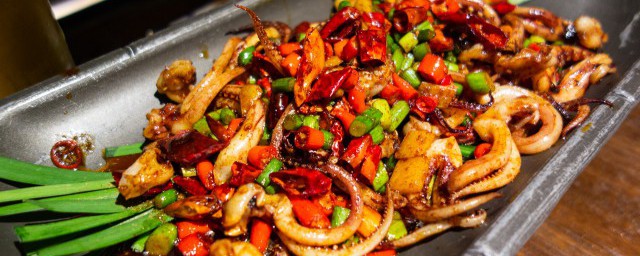 2、方法二:鲜鱿鱼1只,白醋、料酒、孜然、葱末、姜片、蒜茸各适量。将鱿鱼剪开,把墨囊取出,剥下皮,剪去内脏并冲洗干净。将鱿鱼切成花刀片,放在沸水中焯一下,捞出沥干。锅中放油烧热后,放入葱末、姜片炝锅后,倒入鱿鱼快速翻炒,再放入白醋、料酒、孜然,将鱿鱼炒熟透。