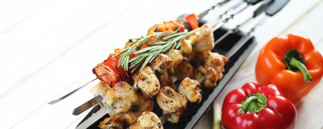 3、空气炸锅烤鸡肉串。鸡胸肉切大块,放烤肉酱,洋葱也切大块,翻拌均匀裹保鲜膜腌制15分钟,串串一块蔬菜一块肉,空气炸锅25分钟,中途翻面并且刷橄榄油,烤好后就可以取出来开吃。