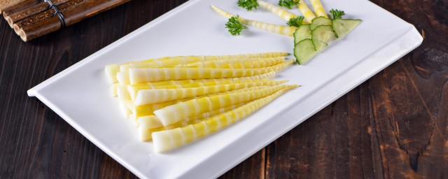 1、先用刀把冬笋的尾部切掉,再将冬笋头朝上放置,用刀从笋头往下切,用手剥下笋衣。