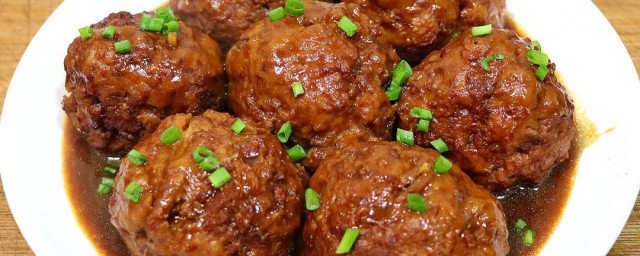 5、炒锅内留少许食用油,略炒油菜及胡萝卜丝,再将炸好的肉丸倒入,并加入酱油、清水、料酒同烧,中火焖煮10多分钟至熟透,用水淀粉勾芡,淋明油盛盘即可。