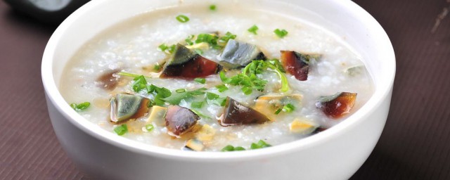 1、原料:大米150克,皮蛋2个,猪瘦肉225克,生姜少许,清水2升,香葱一根,香菜1棵(根据个人喜好)。调料:食用油200克(实耗10克),香油少许(根据个人喜好),胡椒粉少许,精盐4小匙,味精1小匙。