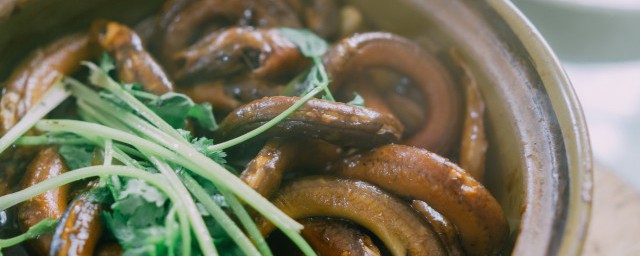 2、选用大条的新鲜鳝鱼,整条放在炭火烤架上慢慢烤制,等到鳝鱼两面金黄,肉质全熟,表皮起泡后,去掉内脏,清洗干净。将鳝鱼用手撕扯成五公分左右长的段状备用。