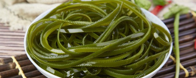2、将海带洗净,上锅蒸熟,取出浸泡后切丝,装盘待用。