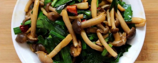 2、做法:凤尾菇撕成小朵洗干净,用冷水浸泡10分钟;韭菜择洗干净;凤尾菇入煮锅焯水后捞出沥干水;韭菜切成段,凤尾菇撕成条;起油锅,韭菜根入锅煸香,放菇入锅炒;加酱油炒,视情况加少许水盖上锅盖3、4分钟,加盐炒,炒均匀关火,韭菜入锅炒;炒均匀即可盛出享用。