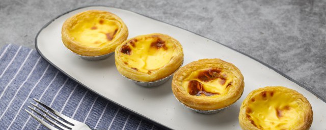 2、制作蛋挞比较简单,将淡奶油、牛奶以及糖搅拌均匀加热至糖融化之后,再加入蛋黄、低筋面粉搅拌均匀,蛋挞水就制作好了,接着将它倒进蛋挞皮里面装到烤盘,放到预热好的烤箱里面进行烤制即可。