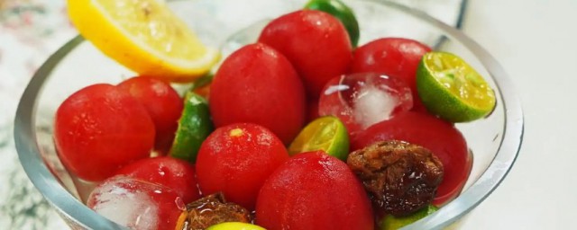 5、将剥皮后的番茄放入一密封罐中,倒入降温的梅子糖水,放入冰箱冷藏过夜即可。