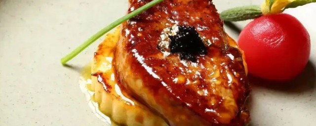 2、锅内放入牛油15克,小火烧化后放入鹅肝小火两面各煎1分钟至八成熟,取出装盘;白灵菇片成同鹅肝一样的片。