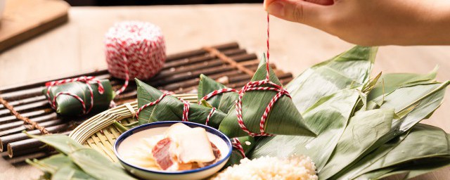 5、粽子底部放浸泡的米,中间放红烧肉,然后再放米封顶。