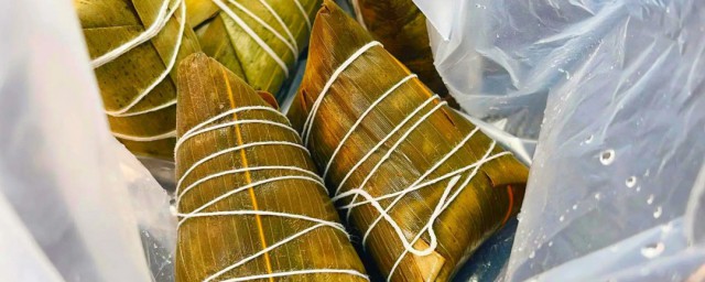 1、首先从冰箱里拿出冰冻的粽子,打开袋子去掉冷气,没包装的可以忽略这一步骤。