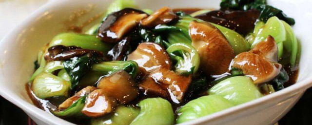 8、放蘑菇、油菜,翻炒,放盐,继续中火翻炒大约3分钟。