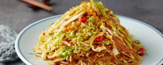 6、将粉条放入锅中,翻炒均匀,用筷子比较好炒,让粉条和酸菜可以混合均匀,炒2、3分钟的时间,加上点盐调味,粉条熟后,就可以出锅了。