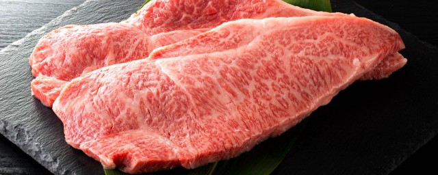 2、准备一块牛里脊,分成三份,切成薄片。