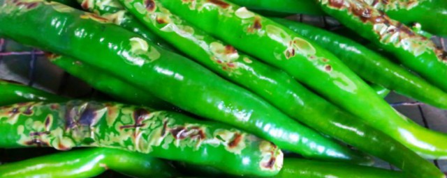 3、将尖椒洗净,用铁钎将其串起。