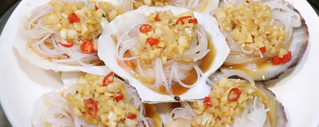 6、蒸好的扇贝放上粉丝再浇上蒜蓉味汁即完成。