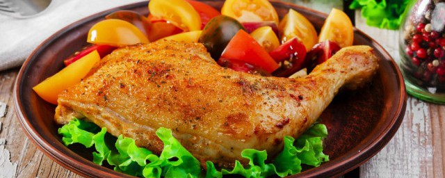 13、烤好的鸡腿直接取出,等到温度不烫了,将它夹到盘子里,就可以端上餐桌享受美食了。