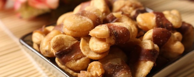3、锅中烧油,油温烧至六到七成热放入鲜蚕豆瓣,全程中火炸至干香酥脆捞出控油装盘。