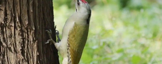 2、在中国分布较广的种类有绿啄木鸟和斑啄木鸟。啄木鸟有着强直尖锐的喙,可用以凿开树皮;其舌自头骨后绕过,从鼻孔达到喙尖,这种特化结构可使舌伸出很长,并能伸缩,尖端列生短钩,适于钩食树木内蛀虫;尾羽呈楔形,羽轴粗硬,啄木时支撑身体。