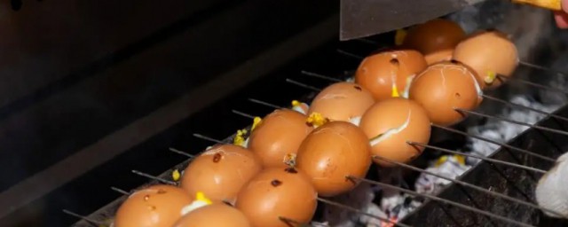 6、把煮过的鸡蛋立即捞出放入烤盘中,串到一起。