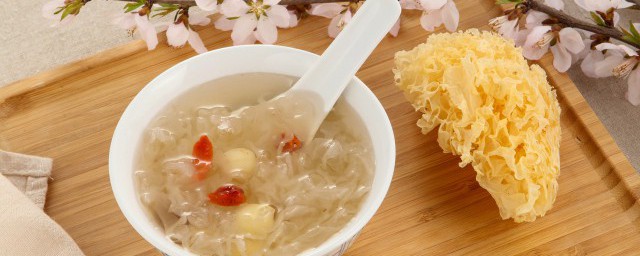 2、银耳是非常好吃的菌类食物,味道可口,营养丰富,美容养颜。如果是需要放入莲子、红枣、枸杞等配料的话,银耳的量还可以适当减少一些,毕竟煮一朵银耳就需要6-7碗水的量,并且喝银耳汤是很容易饱腹的。