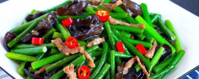 1、首先准备1把新鲜的蒜薹,把蒜薹帽摘掉,再清洗干净,控干水分。摘掉的蒜薹帽不要丢,用来炒鸡蛋、或切碎了摊饼,也非常好吃。