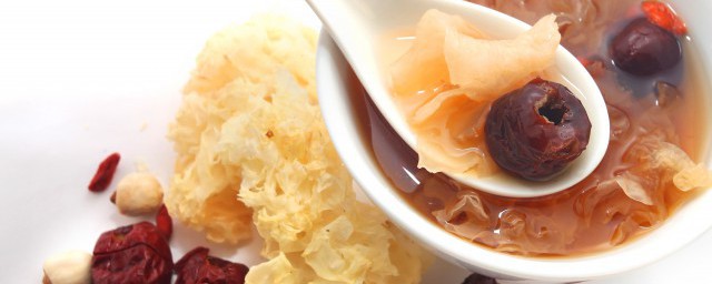 3、接着放入冰糖和红枣,焖15分钟,银耳汤就彻底的煮好了,直接就可以食用。