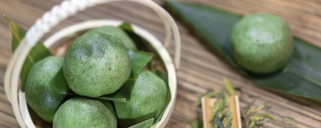 5、将青团分成30g一个的小团子,按压成薄皮。