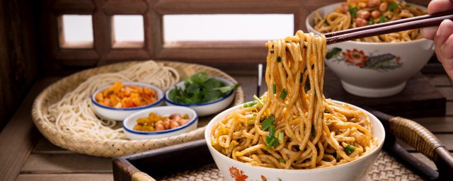 1、主料: 细薄面条250克, 掐菜(绿豆芽去根)100克。调料:香油10克,净葱10克,净姜、蒜瓣各5克,酱油75克,醋20克,辣椒油25克,麻酱25克,花椒粉1克,芝麻2.5克,白糖10克。
