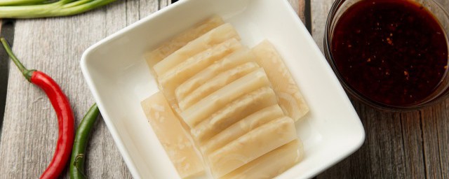 2、肉皮冻,是一种蛋白质含量很高的肉制品。肉皮冻是满族人的一大发明。制作时以猪皮为原料加工而成,不但韧性好,色、香、味、口感俱佳,而且对人的皮肤、筋腱、骨骼、毛发都有重要的生理保健作用。肉皮冻的营养成分主要有脂肪、蛋白质和纤维素等营养元素。猪皮里蛋白质含量是猪肉的2.5倍,碳水化合物的含量比猪肉高4倍,而脂肪含量却只有猪肉的1/2。