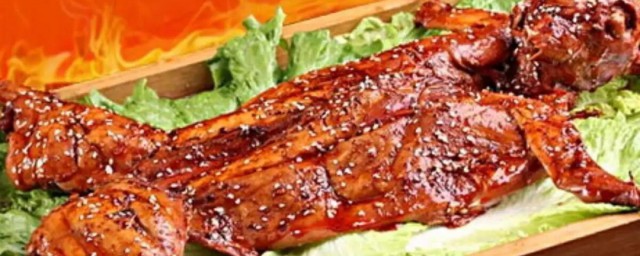6、把腌制好的兔子,抖悼调料,放在烤架上,放入烤箱,230度上下火烤30分钟。再换成160度上下火烤上两小时就可以出箱了。