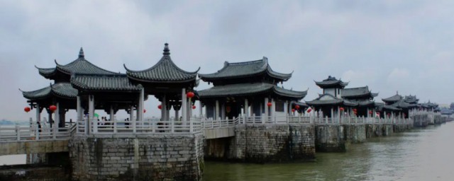 2、湘桥春涨:广济桥与湘桥春涨 广济桥位于潮州东门外,横跨浩瀚的韩江两岸,被著名桥梁专家茅以升誉为“世界上最早的启闭式桥梁”。