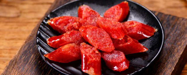 3、起油锅,放姜丝爆香,然后关小火把腊肠放进去炸一下,炸出油来!然后将腊肠盛起,留下油在锅里。将淘好的米倒进锅里,不停的翻炒,直到米全部被油拌匀。米的水份将干的时候,放下少许盐与酱油,再继续拌匀。