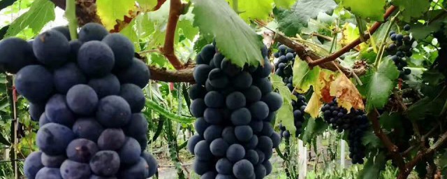 5、果实封穗后至转色前,此期施肥以钾肥为主,提高着色率和果实含糖量促进枝条正常老熟。每667平方米施尿素40千克,硫酸钾30千克。对于树势弱或产量过高的葡萄园,可将尿素增加到每667平方米60千克,以防止果粒萎蔫或转色病。