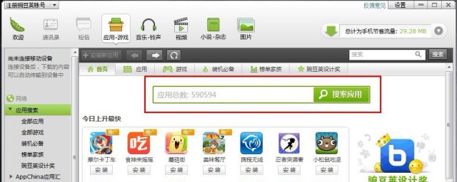 3、输入豌豆荚并进行搜索。