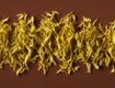 3. 准备一根细长的树枝或者竹签,将腌制好的肉串在上面,留有一定的空隙。