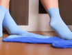4. 将毛绒拖鞋放入盆子中,用手轻轻揉搓,确保拖鞋整体湿润,但不要过于用力,以免损坏绒毛。