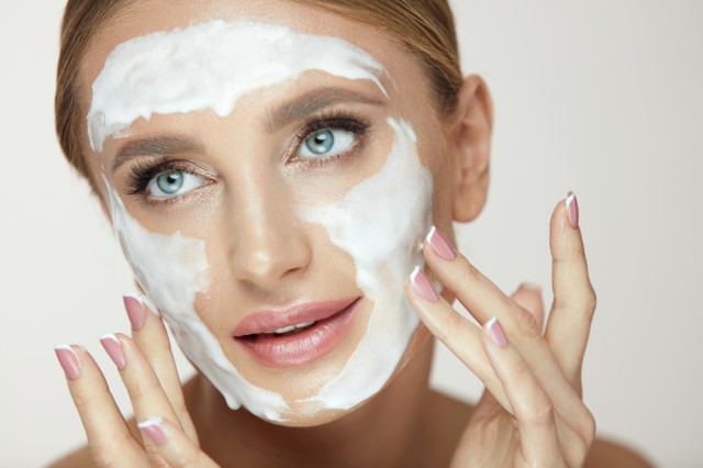 用洗面奶进行清洁,将洗面奶打泡后再往脸部按摩清洗,然后温水冲洗干净脸部的泡沫。需要注意的是,一些不易察觉的部位一定要清洗干净,例如:鼻翼、额头边缘、嘴角、下巴等容易堆积角质废物的死角。细细涂抹并确认毛孔脏污是否确实溶解。